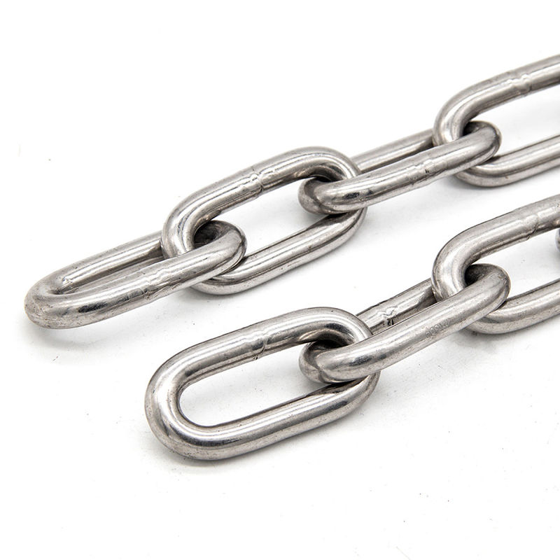Rantai stainless steel banyak digunakan di banyak bidang: Industri konstruksi: Saat membangun bangunan bertingkat tinggi, rantai stainless steel digunakan untuk mengangkat peralatan dan membawa benda berat.Selain itu, juga digunakan untuk memasang pagar luar bangunan, menempatkan tanda peringatan, dll. Bidang industri: rantai baja tahan karat digunakan untuk memuat dan melepaskan benda berat,Bagian pendukung peralatan transmisi dan pengangkutanBidang pertanian: Petani menggunakan rantai baja tahan karat untuk mengikat benda dan menarik benda berat.seperti memasang jaring dan menarik batu.Kehidupan sehari-hari: Rantai stainless steel juga digunakan untuk rantai pengeringan pakaian, rantai anjing hewan peliharaan dan rantai ayunan.Rantai pakaian cocok untuk digunakan di lingkungan lembab karena ketahanan korosi dan kekuatan tinggi; rantai anjing hewan peliharaan aman dan dapat diandalkan dengan ketahanan korosi yang kuat; rantai ayunan dapat menahan ketegangan dan berat besar dan cocok untuk penggunaan jangka panjang di luar ruangan.